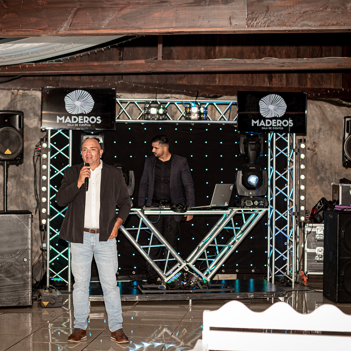 Nuestro equipo incluye cabezas móviles, luces inteligentes, marco truss, pantallas, iluminación interna, DJ mezclas en vivo, animación, micrófonos profesionales alto alcance, sonido amplificado, 5 horas de servicio.