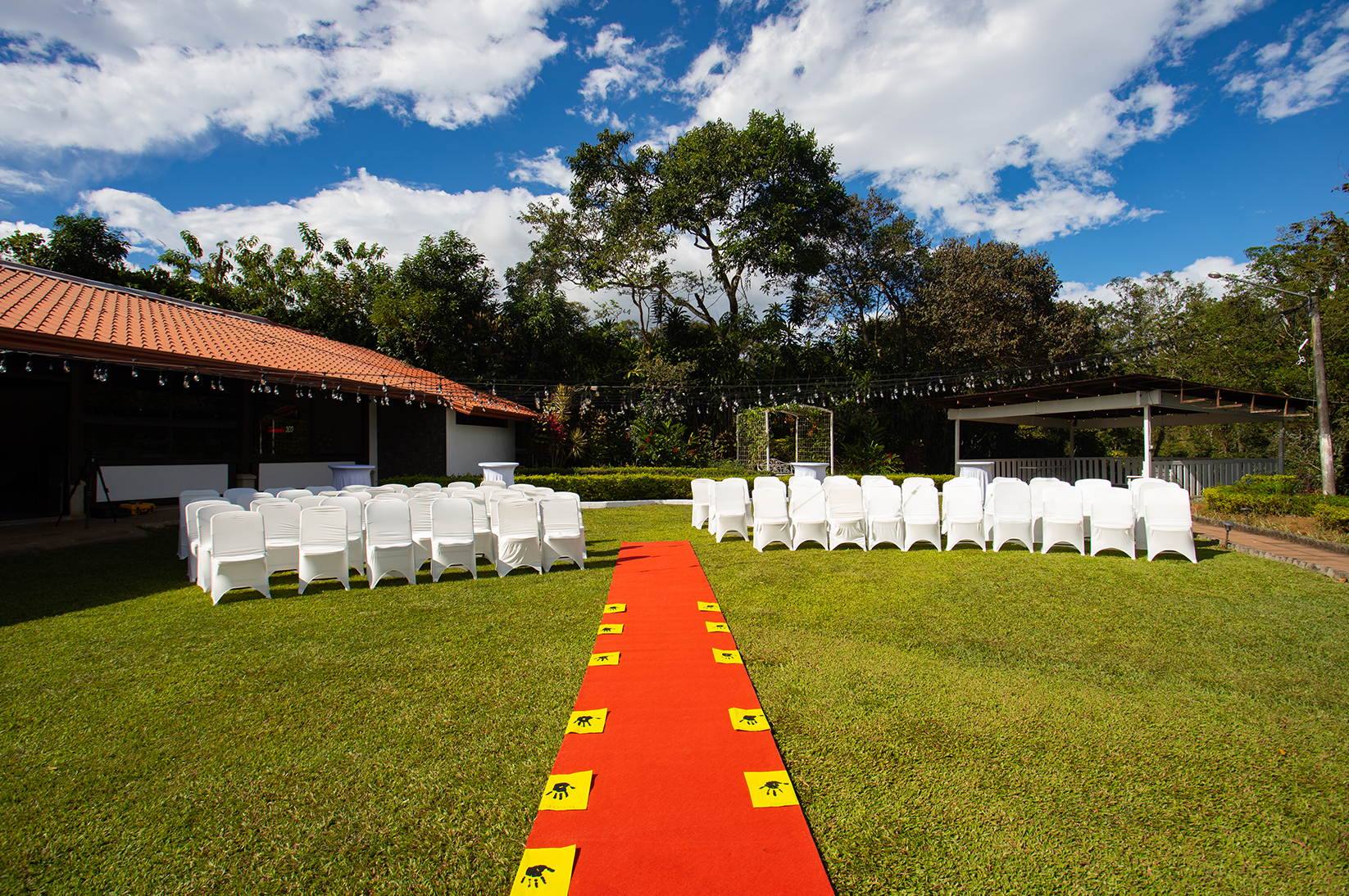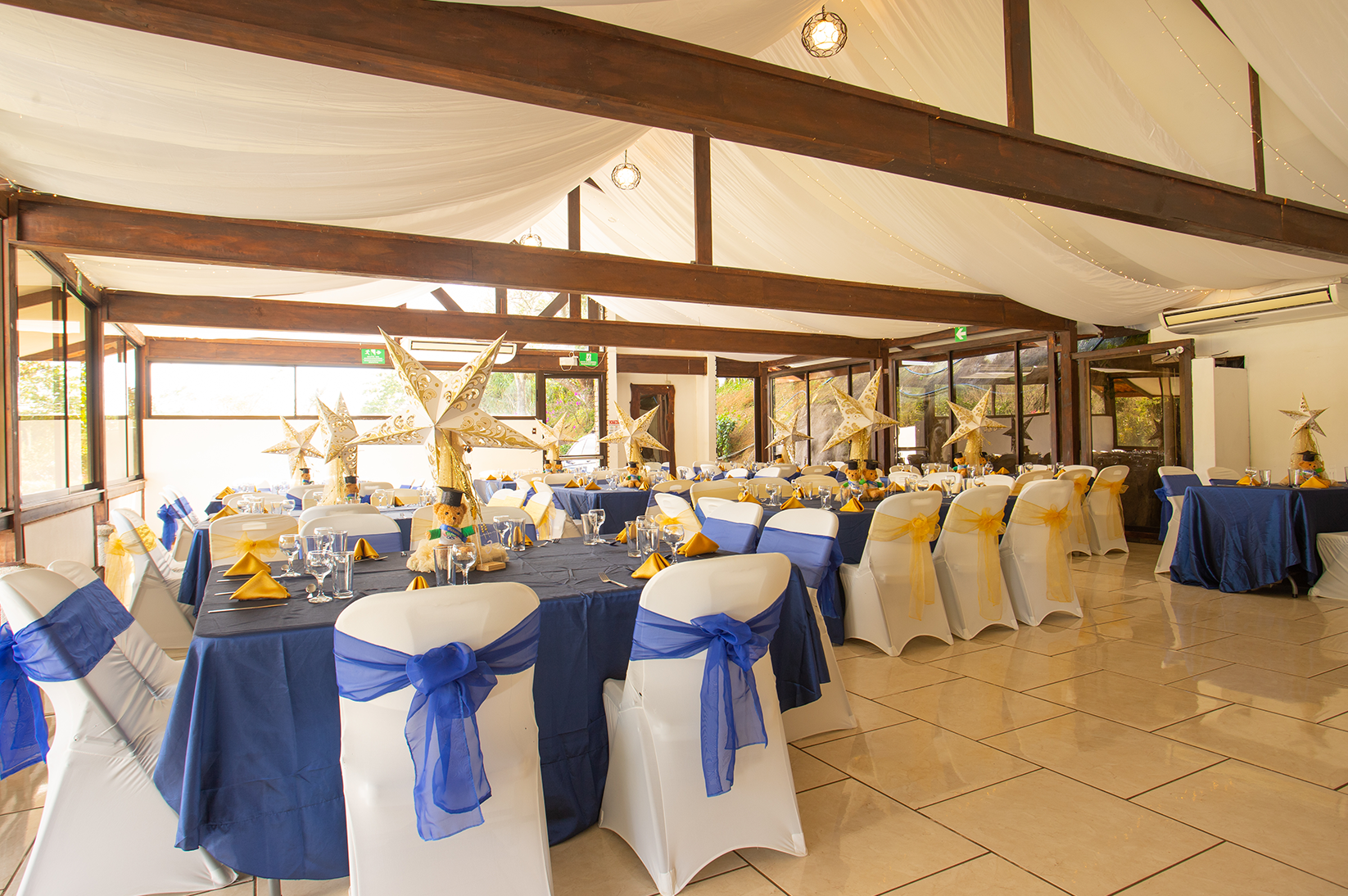 Nuestro montaje incluye luces tipo turno, 2 salas de 6 puestos cada una y 5 mesas cocteleras.